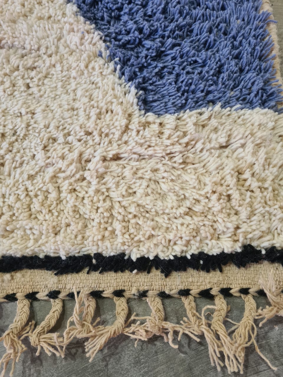 Lacustrine Silence – Beni Mrirt Rug in Indigo and Ecru