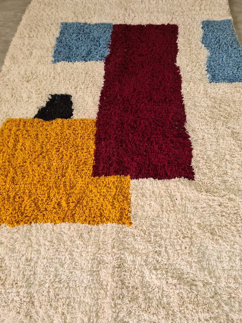 The Landscape is a contemporary interpretation of Moroccan wool mastery, woven in the Beni Mrirt tradition. This rug’s cubist architecture evokes abstract art movements while remaining deeply rooted in Amazigh textile heritage.