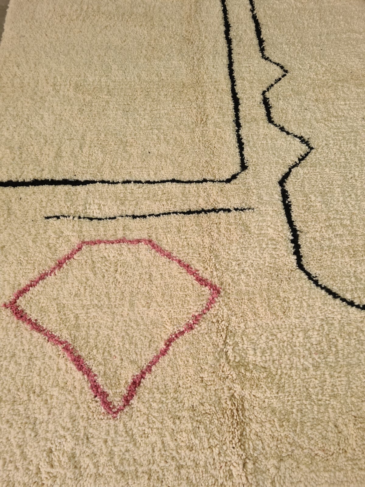 - Beni Ourain Wool: Known for its high pile, soft hand, and spiritual minimalism.