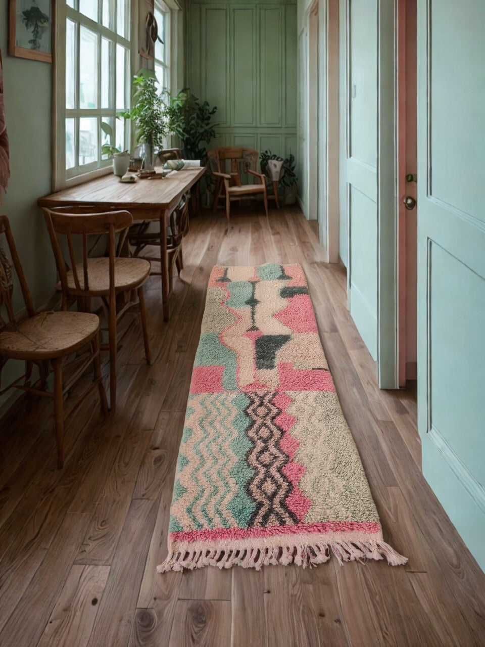 Azilal runners like this are not mere textiles—they are oracles in wool. Perfect for narrow corridors or intimate spaces, this piece carries the pulse of ancestral feminine wisdom.
