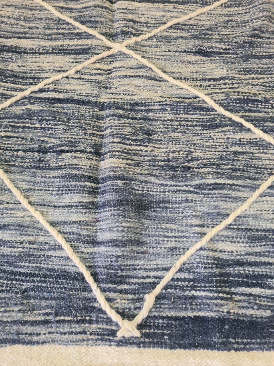 - Zanafi Geometry: Hand-braided, tight flatweave with stepped diagonal rhythm