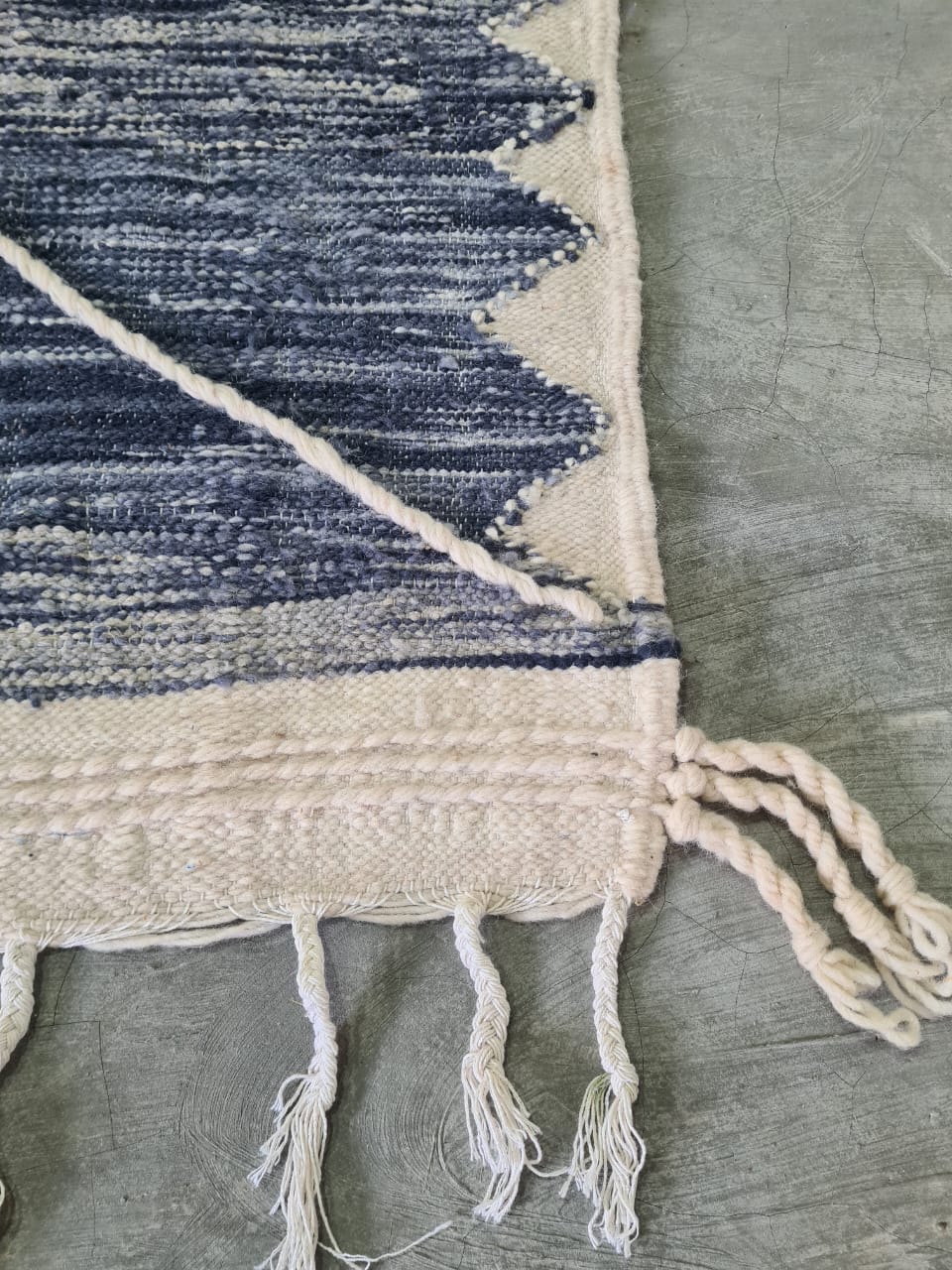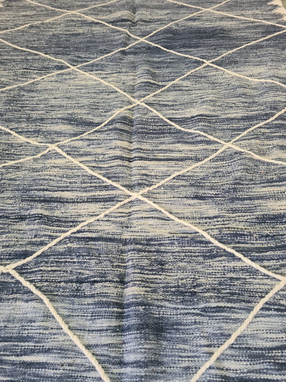 Tide Lines – Zanafi Flatweave in Indigo Wool Geometry